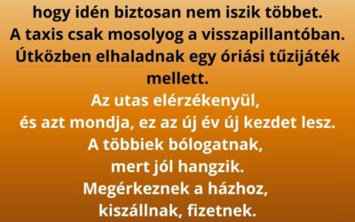 Szilveszter éjjel egy baráti társaság taxit hív hazafelé. Már mindenki kicsit hangosabb a kelleténél. Az egyik utas kijelenti, hogy idén…