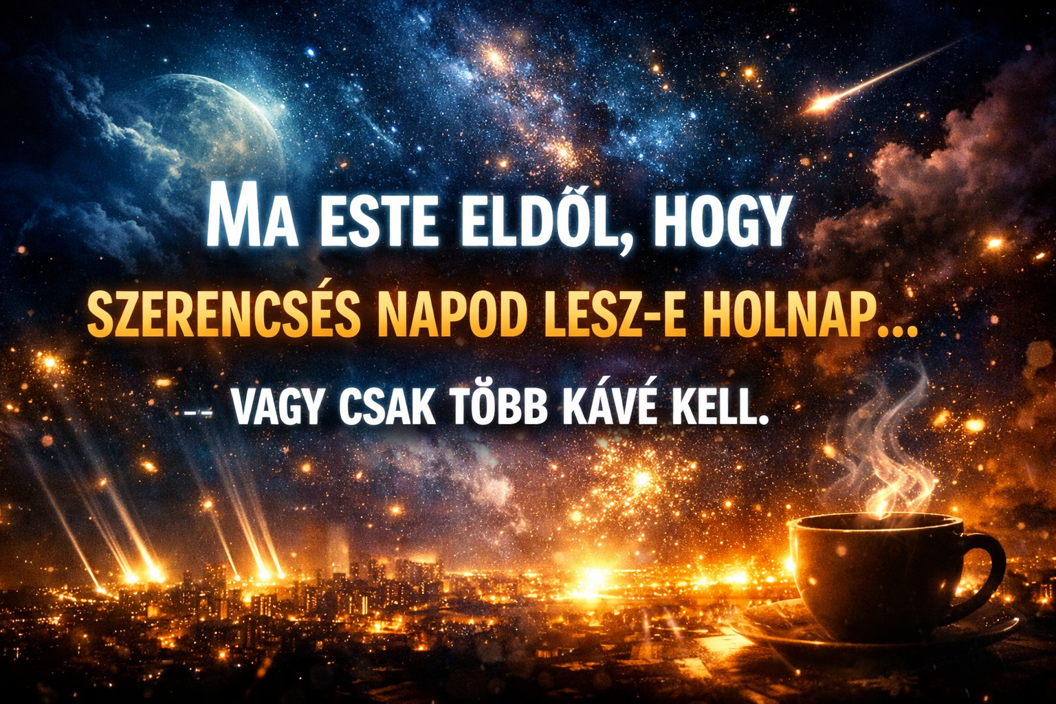 Ma este olyan döntés előtt állsz, amit régóta kerülgetsz, és bár elsőre azt érzed, hogy csak sodródsz, hidd el: most te vagy az, aki irányít. Valaki holnap megpróbálja elvenni a kedvedet, de mire odáig eljutsz, már túl leszel rajta lélekben. Egy régóta húzódó ügy most végre elmozdulhat, ha mersz rakni rá még egy lapáttal. Ne lepődj meg, ha este jön egy váratlan üzenet – nem rossz hír, inkább tisztáz valamit. A fejed ma tele lesz ötletekkel, de csak egyet érdemes komolyan venni. A hangulatod hullámzó lesz, de estére kisimulsz. Ha ma kicsit felborított minden, holnap összerakod. A szerencséd dolgozik, csak nem mindig látványosan. Ha más nem, a kávé kihúz.