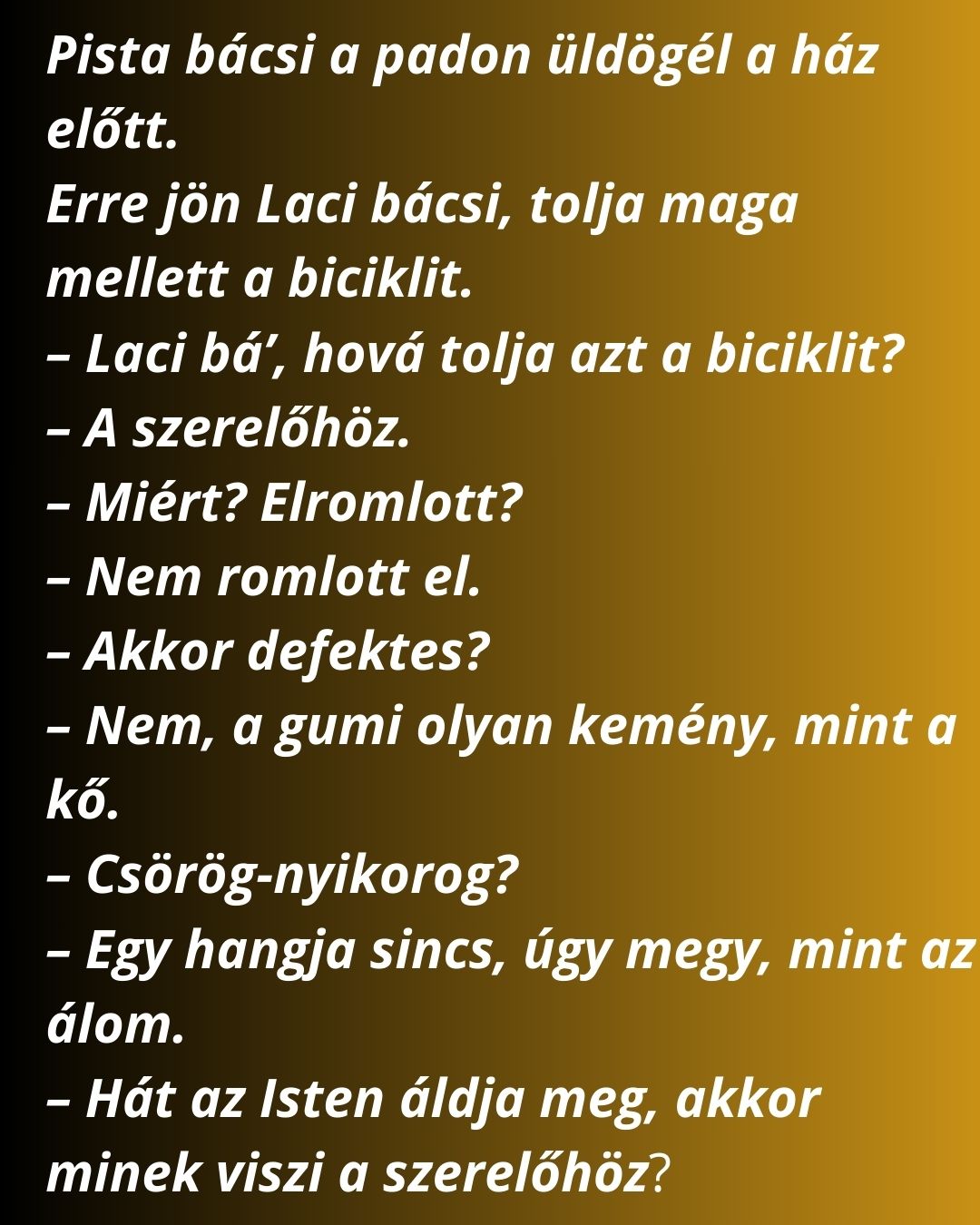 – Laci bá’, hová tolja azt a biciklit?
